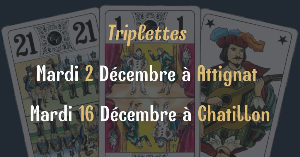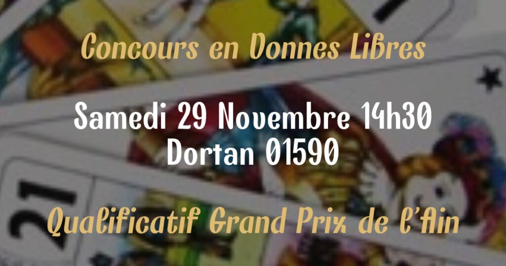 Lieu: Foyer rural, 01150 Saint-Sorlin-en-BugeyHoraire de la première séance : Samedi 20/12 à 08h45Repas : Menu 20€, café et vin ...