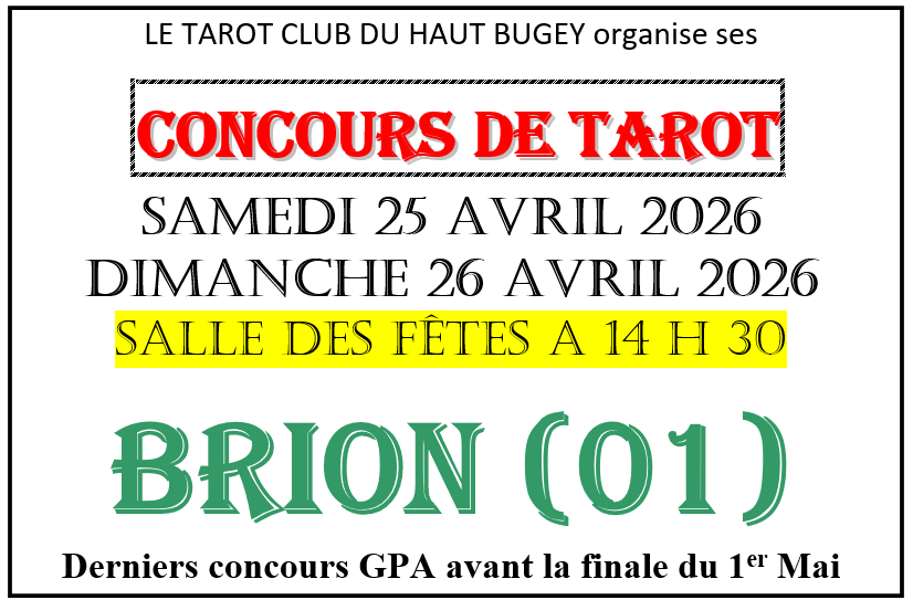 Lieu: Salle des Fêtes, Romans 01400Horaire de la première séance: Jeudi 7 Mai, 8h45Repas: Restaurant Rolande, 01400 CondeissiatMenu 18€Cake aux ...