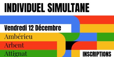 Contacter un des 3 clubs pour vous inscrire:Ambérieu: Stéphane, stephane.jouffroy@gmail.com, 06.29.23.32.75 (le tournoi aura lieu exceptionnellement à la cabane des boules)Arbent: Gérard, gerardsandoz01@gmail.com, 06.08.51.17.23, (le tournoi aura lieu salle des tourneurs à Arbent)Attignat: Gaby, gaby.perret01@gmail.com, 06.45.46.58.86 Le simultané sera également joué à Baume les Dames, Estrablin, Lons, Pontarlier et Seurre