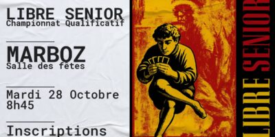 Les inscriptions sont closes, vous pouvez vous inscrire en liste d’attente, les inscriptions seront validées 4 par 4 Lieu: Salle des Fêtes, MarbozHoraire de la première séance: Mardi 28 Octobre, 8h45 assisRepas: 20€, vin comprisASPIC – MACEDOINEPOULET ROTI + GRATIN DAUPHINOISFROMAGE BLANC A LA CREMEDESSERTCAFE